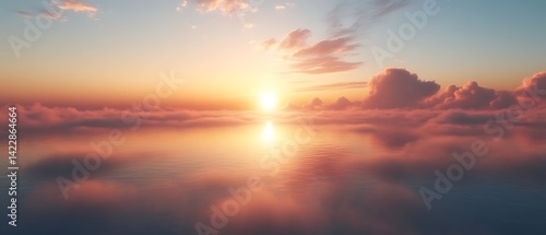 Obraz premium Sunset above clouds reflecting on calm water.