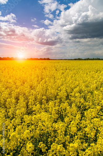 Obraz premium Sunset above colza field