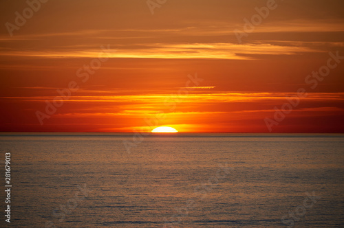 © fotowunsch, Obraz premium sunset above ocean while cruising through sea