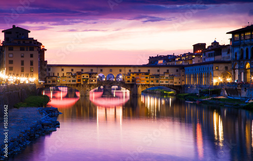 Fototapeta premium sunset above Ponte Vecchio - Old Bridge view from Arno river bank