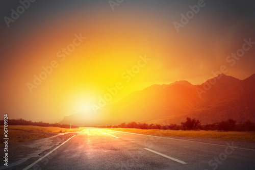 © Sergey Nivens, Fototapeta premium Sunset above road