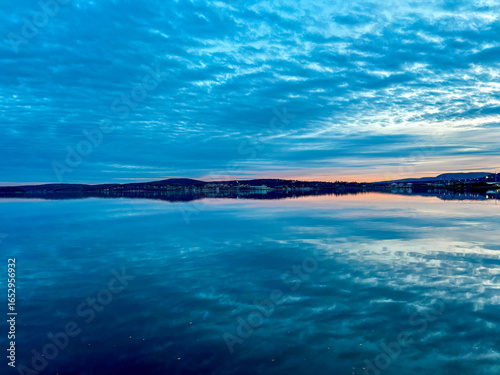 © potatoehead, Fototapeta premium Sunset above the baltic sea in Örnsköldsvik harbor with water reflections, Sweden
