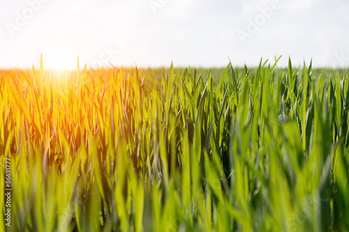 © Stockr, Fototapeta premium Sunset above young wheat field