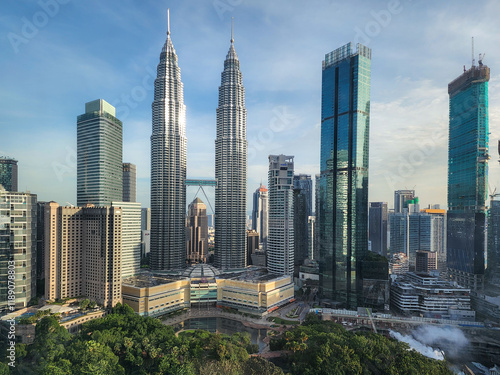 © Kinsei, Obraz premium Sunset aerial view of Kuala Lumpur cityscape. Beautiful cityscape at Kuala Lumpur, Malaysia.