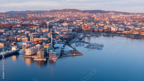 © Viktor Sokolov, Fototapeta premium Sunset aerial view on Aker Brygge and Filipstad in Oslo, Norway