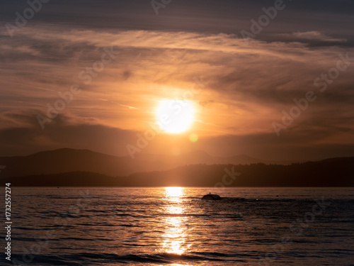 Naklejka premium Sunset along the Pacific Ocean in Vancouver