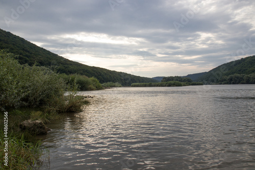 © Андрій Лучишин, Obraz premium sunset among the clouds on the river