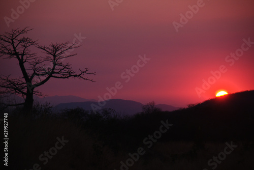© maxrlx, Obraz premium Sunset and Baobab Silhouette in Serra da Chela, Angola