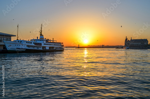 © FatihDama, Fototapeta premium sunset and ferry at kadikoy, istanbul