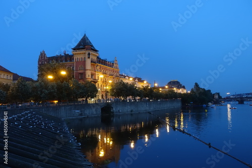 Naklejka premium sunset and night view near Charles Bridge with river view and reflection, a...