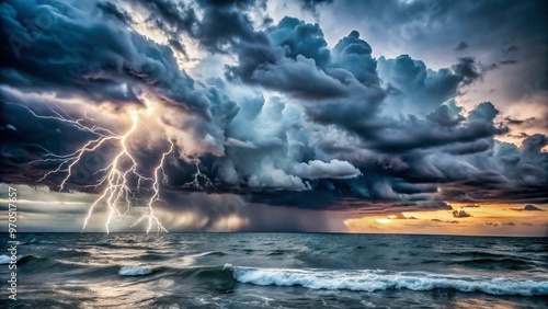 Naklejka premium sunset and powerful storm brewing over the ocean