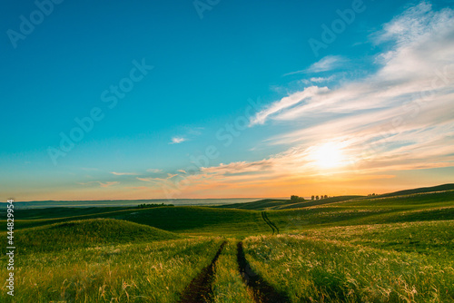 Obraz premium Sunset and road along the hills.