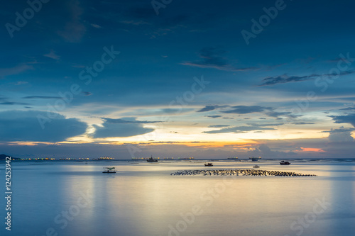 © chatchawanak, Naklejka premium Sunset and sea view with beautiful sky in the background near in