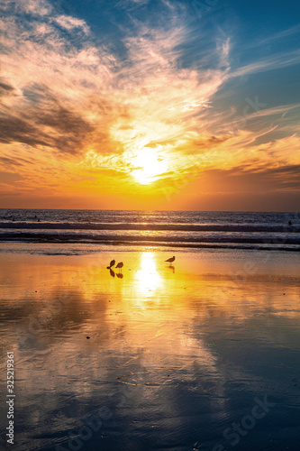 Obraz premium sunset and seagulls at pacific beach