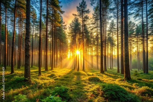 © boxs, Fototapeta premium sunset and sunrise views in the forest with forced perspective