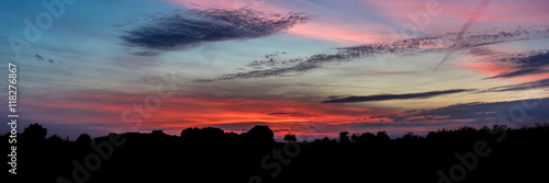 © DZiegler, Fototapeta premium Sunset and Tree Silhouette with a beautiful Sky Panorama