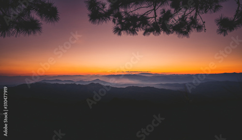 Fototapeta premium sunset and twilight light in the forest on the mountain