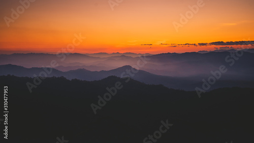 © artrachen, Fototapeta premium sunset and twilight light in the forest on the mountain