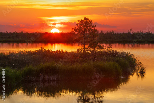 © Viktar Malyshchyts, Fototapeta premium Sunset at a swamp