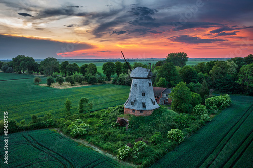 © Patryk Kosmider, Fototapeta premium Sunset at an old windmill in the countryside, Poland