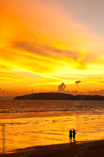 © Sura Nualpradid, Obraz premium Sunset at Ao Nang beach, south of Thailand