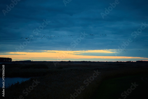 © Couperfield, Obraz premium Sunset at area of Hortobagy location of nature sanctuary in Hungary, Europe