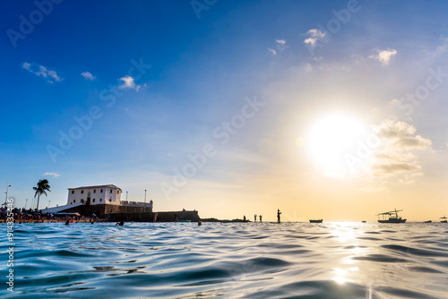 Fototapeta premium Sunset at Baía de Todos os Santos and beautiful blue sea