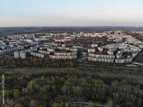 © Sahara Frost, Fototapeta premium Sunset at Berlin satelite town Marzahn Hellersdorf from Wolkenhain platform Kienbergpark