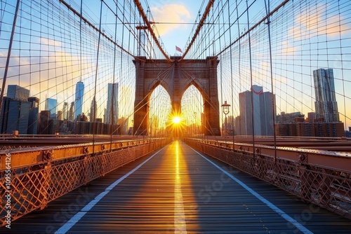 © mobile, Fototapeta premium Sunset at Brooklyn Bridge in New York City