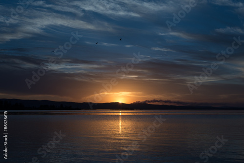 © Anton Papulov, Fototapeta premium sunset at coast of the lake