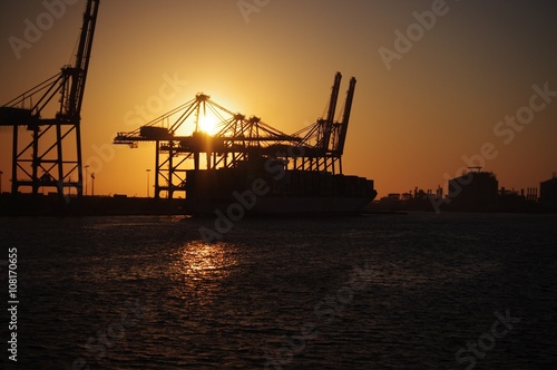 Obraz premium Sunset at container terminal