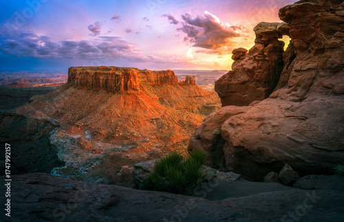 © Christian B., Fototapeta premium sunset at grand view point overlook near moab in canyonlands island in the sky in utah, usa