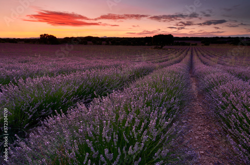 © Jdiezfoto - Juan DYB, Naklejka premium Sunset at lavender fields in Brihuega