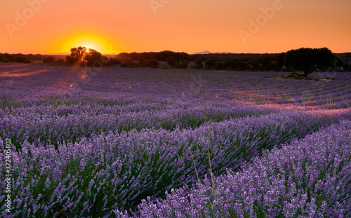 Naklejka premium Sunset at lavender fields in Brihuega