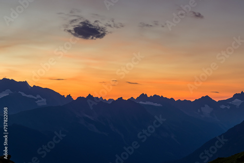 © artwiyanastudio, Obraz premium Sunset at mountain background