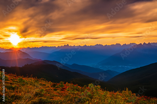 © artwiyanastudio, Obraz premium Sunset at mountain background