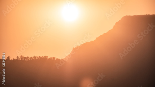© kantharochana, Obraz premium Sunset at mountain in Champasak town, Laos