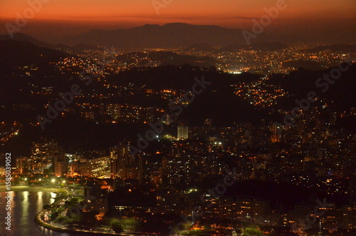 © Medina, Obraz premium Sunset at night on Rio de Janeiro with city lights and the sea and the mountains