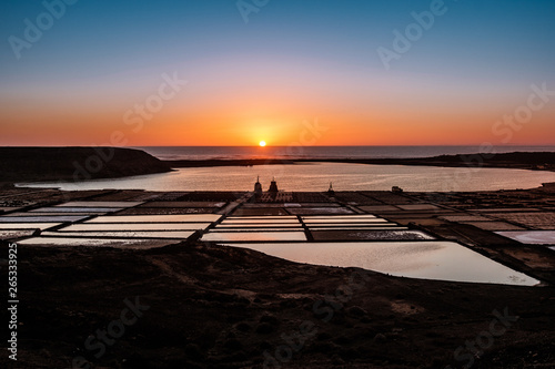 Naklejka premium Sunset at Salinas de Janubio. Old salt pans in the south of Lanzarote were...