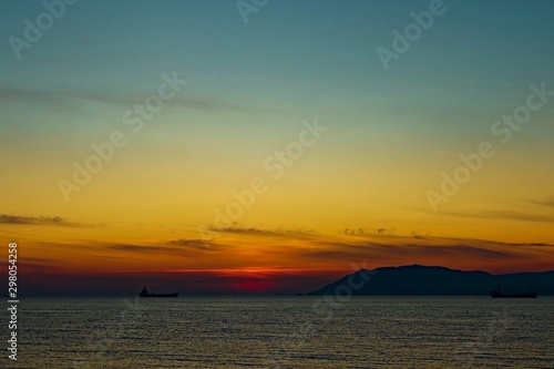 © Aleksandr, Naklejka premium sunset at sea in view of the ship