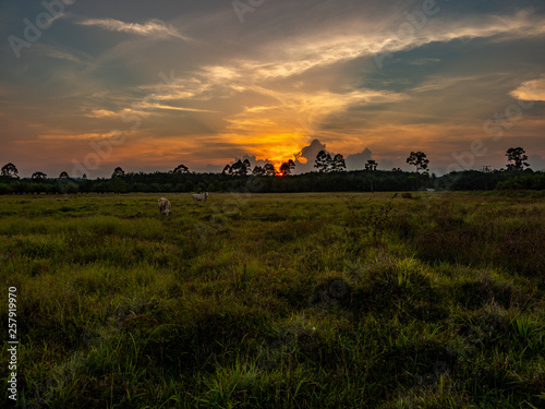© abnohr, Fototapeta premium sunset at the abandoned paddy fields