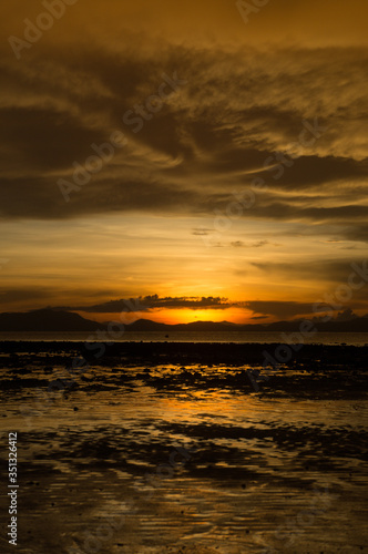 © Mehdi, Obraz premium sunset at the beach with scared cloud