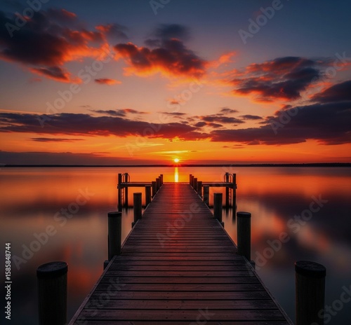 © Afriyann, Fototapeta premium Sunset at the lake beautiful with Cloud
