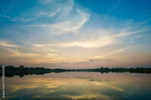 © songdech17, Fototapeta premium Sunset at the lake landscape