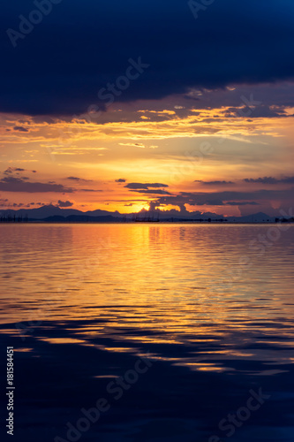 Naklejka premium Sunset at the lake with dark cloud.