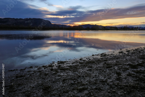 © liramaigums, Fototapeta premium Sunset at the river Gaula, NOrway