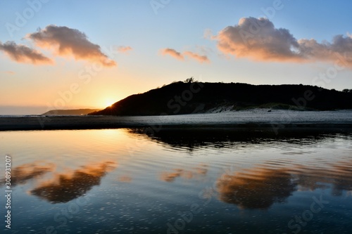 Fototapeta premium Sunset at Three Cliffs Bay, The Gower Peninsula, South Wales, U.K.