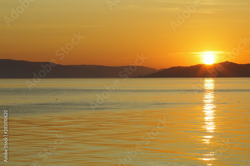 © liramaigums, Fototapeta premium Sunset at Trondheim fjord