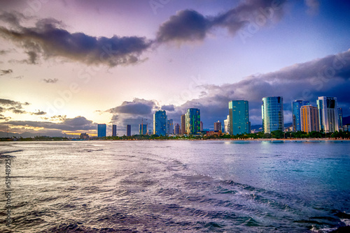 Naklejka premium Sunset at Waikiki Beach on Oahu Hawaii