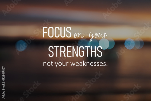 Obraz premium Sunset background with inspirational quotes - focus on your strengths not your weaknesses